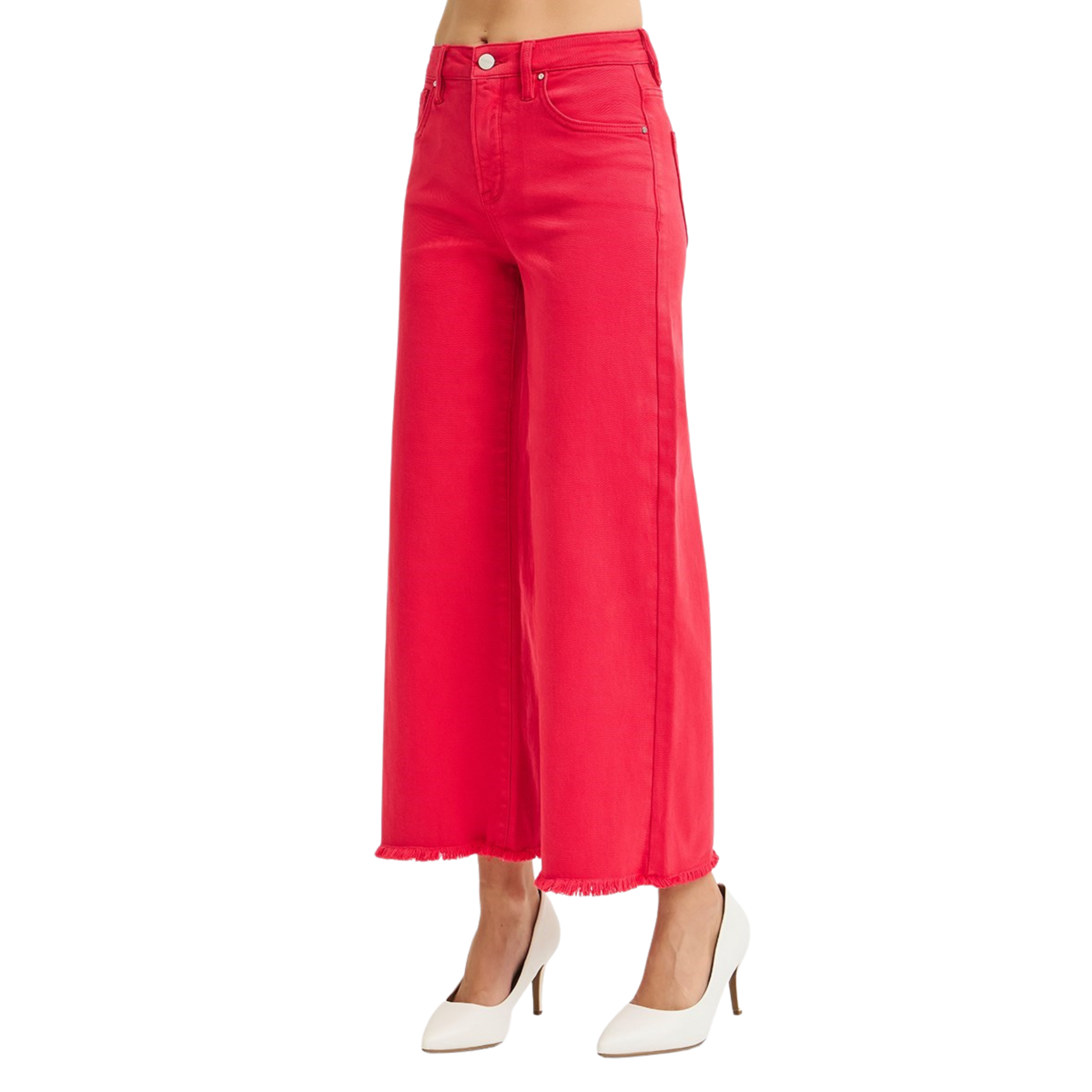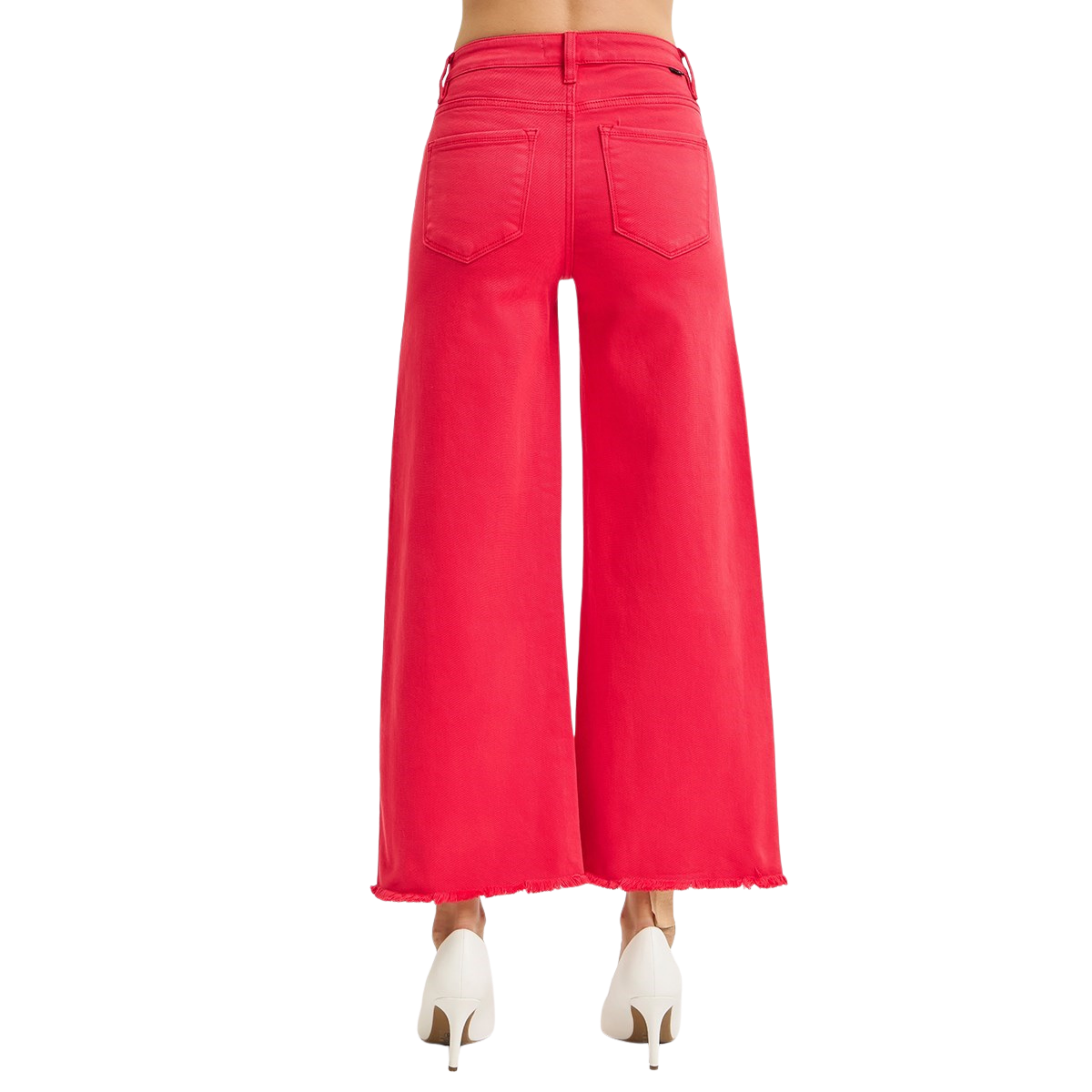 Turn every sidewalk into your runway with these bold, statement-making jeans. Designed with a flattering high-rise waist and a flowy wide-leg silhouette, they create that long, leg-lengthening look we’re all obsessed with. The vibrant cherry-red wash adds the perfect pop of color, instantly elevating even the simplest outfit.