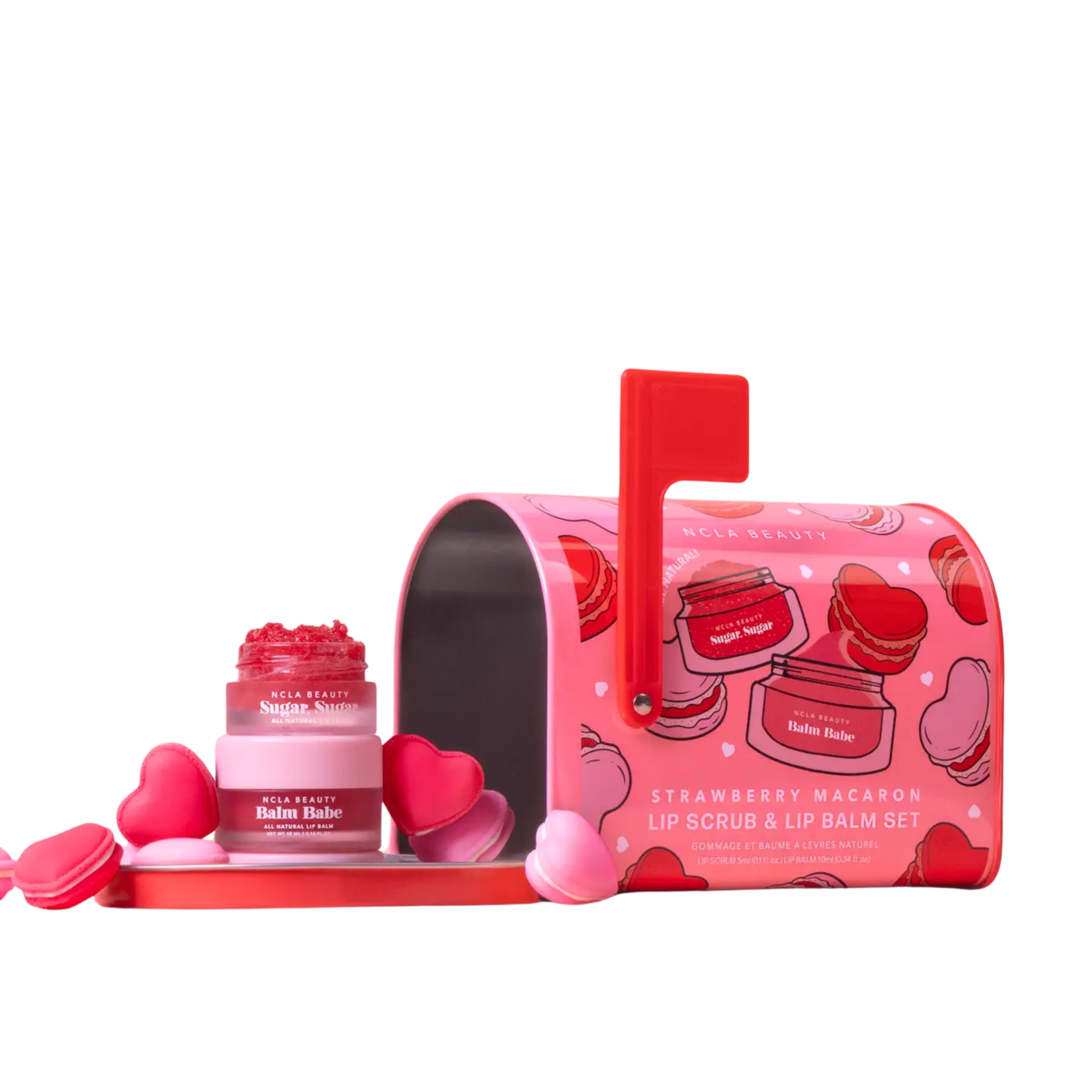 Sweet lips are in. Our Strawberry Macaron Lip Care Set starts with a gentle sugar scrub, then seals the softness with a luscious balm. Kissably smooth, berry-sweet, and ready for any Valentine’s Day moment. The best part? This adorable lip set comes packaged in a reusable mailbox shaped tin can!